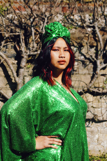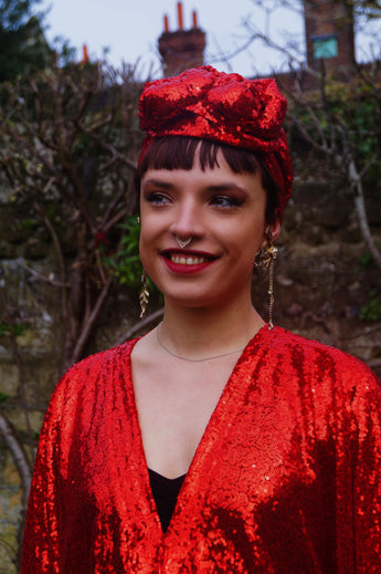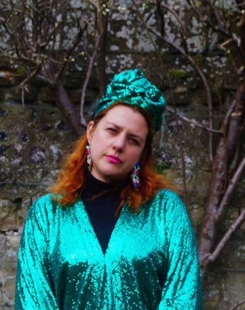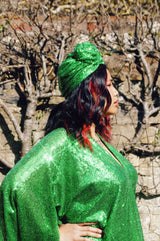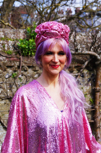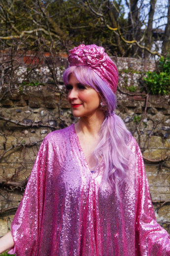 To match our sequin kaftan dresses... Sequin turbans. One size, no stretch measures 55cm....may need securing in place with kirby grips.