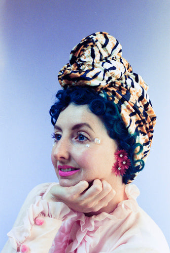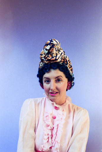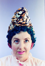 Tiger print Stretch Turban with Top Knot. All handstitched.