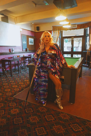 Our kaftans are uniquely fitted with hidden velvet ribbons inside, meaning YOU decide how you'd like to wear them. Choose from -