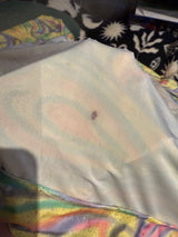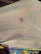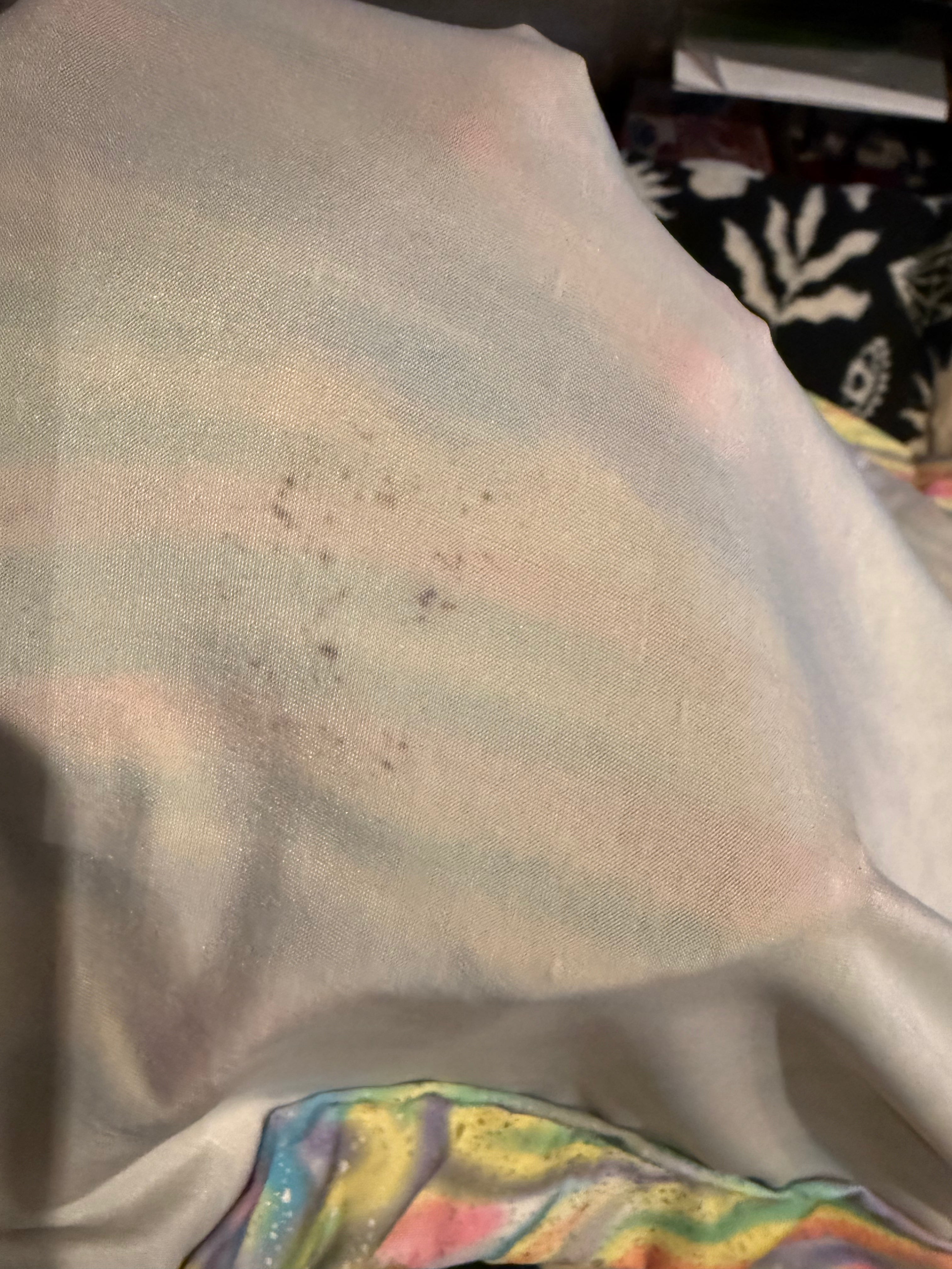 This is a sample pieces with marks on the inside of the fabric - a flaw of the fabric as opposed to dirt (it has been washed and the marks are part of the printing process). Doesn't affect the finished look of the outside of the fabric as it is so busy. See photos attached.