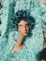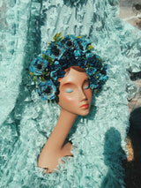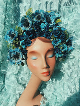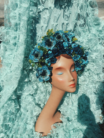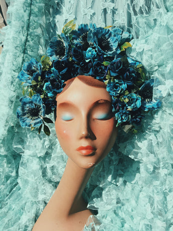 Frida Blue vintage headdress / crown / headpiece / bridal / festival / ascot