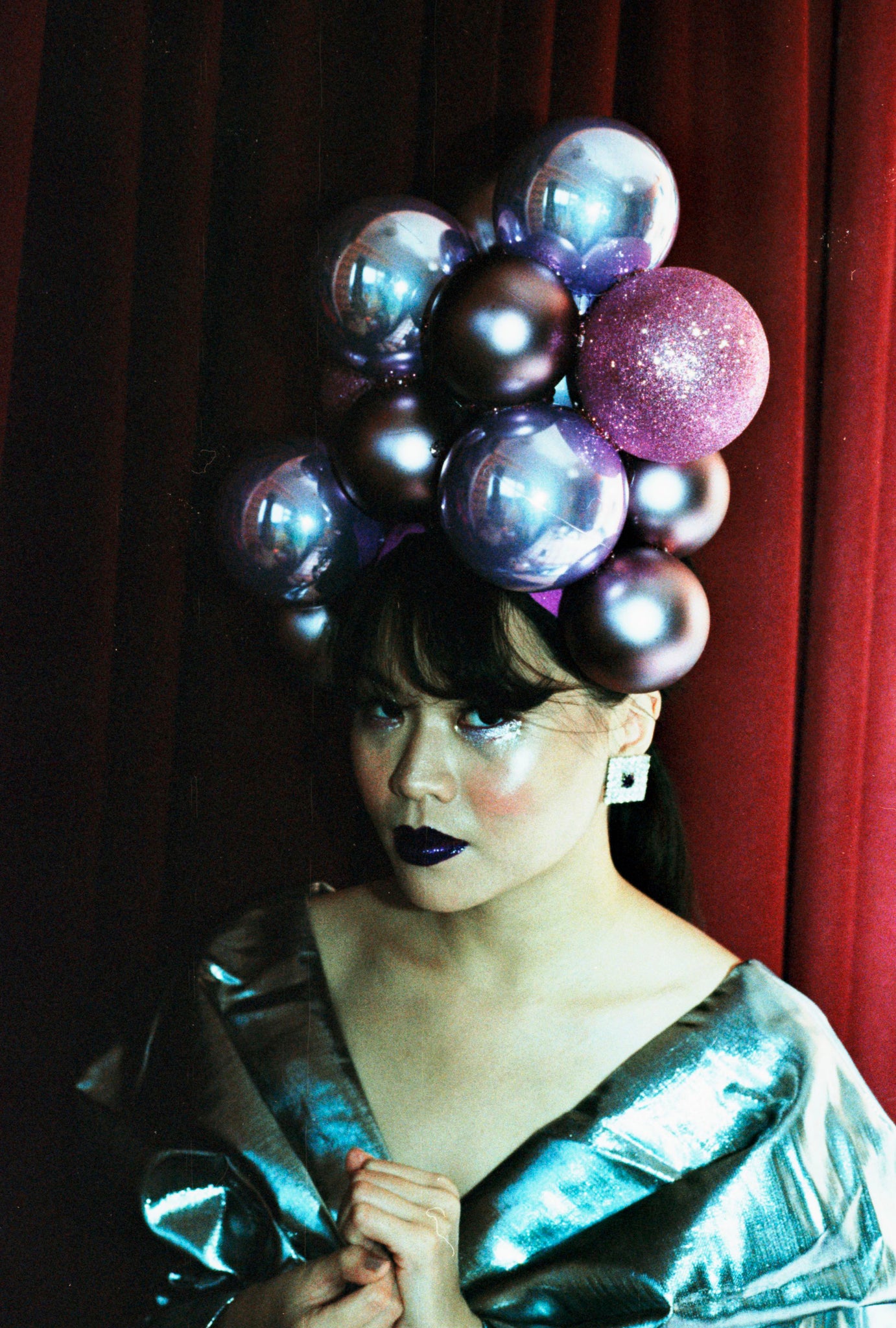 Super fun OTT statement Headpiece made from Christmas baubles and embellishments.