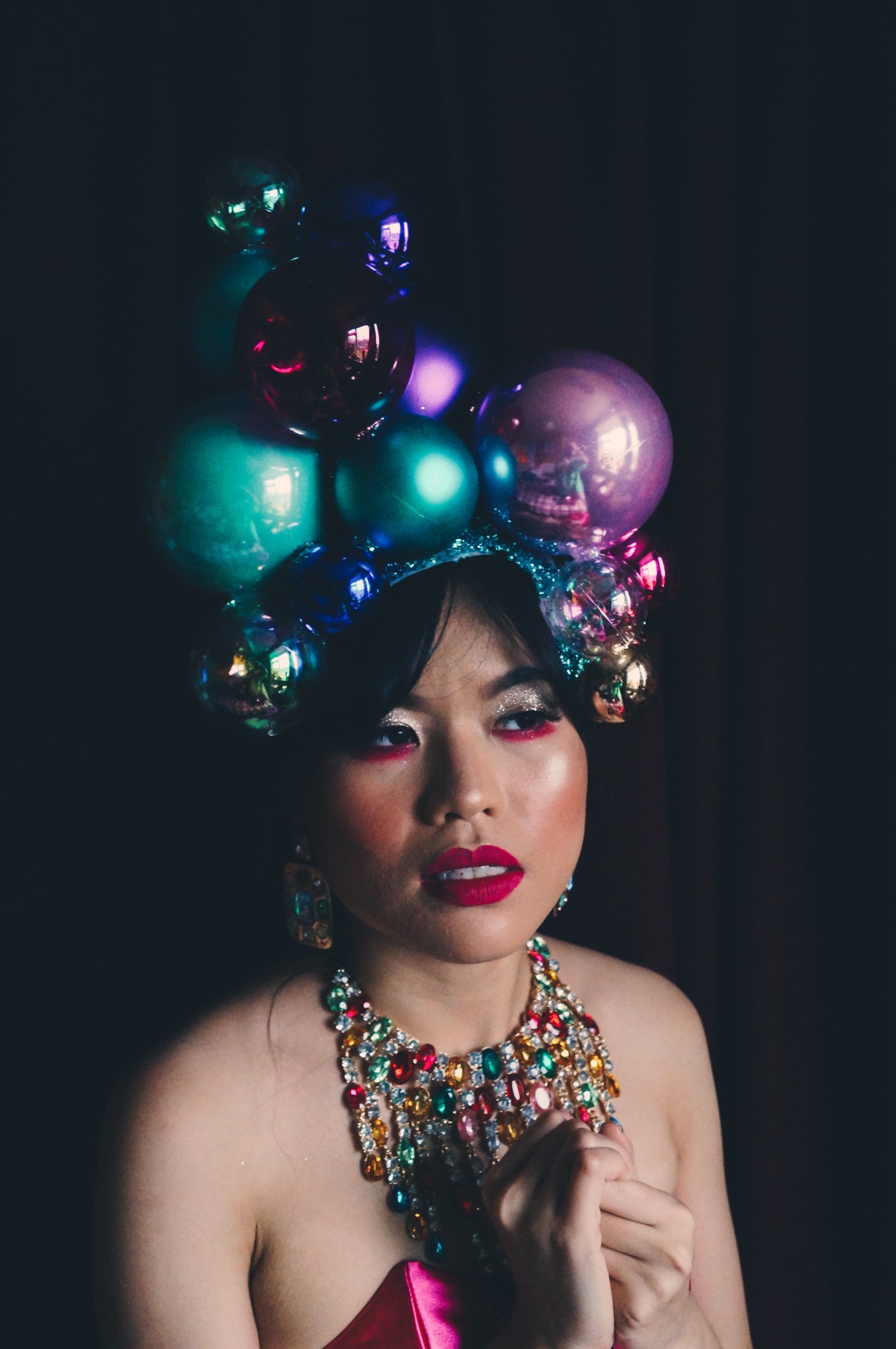 Super fun OTT statement Headpiece made from Christmas baubles and embellishments.