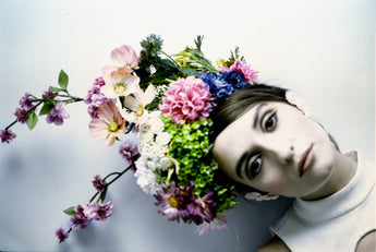 EXTRAVAGANT giant floral headdress consisting of a huge amount of plastic and vintage flower and buds and sprays in all colours - very alice in wonderland inspired.