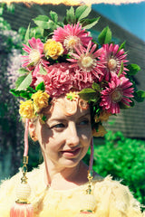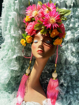 Pink Yellow Plastic Vintage Tassel Flower Crown