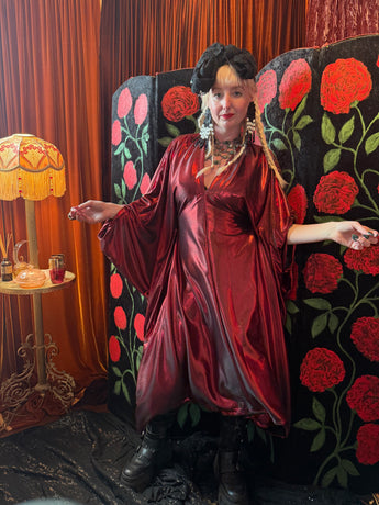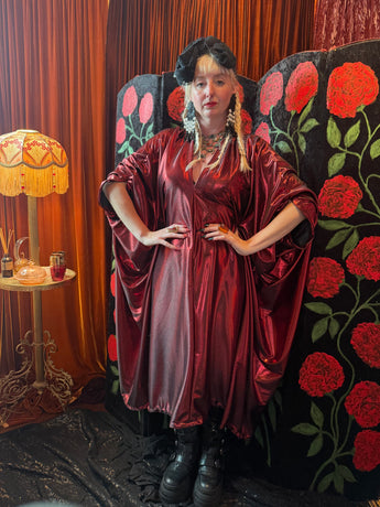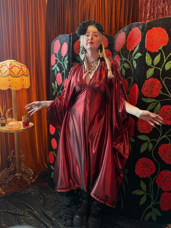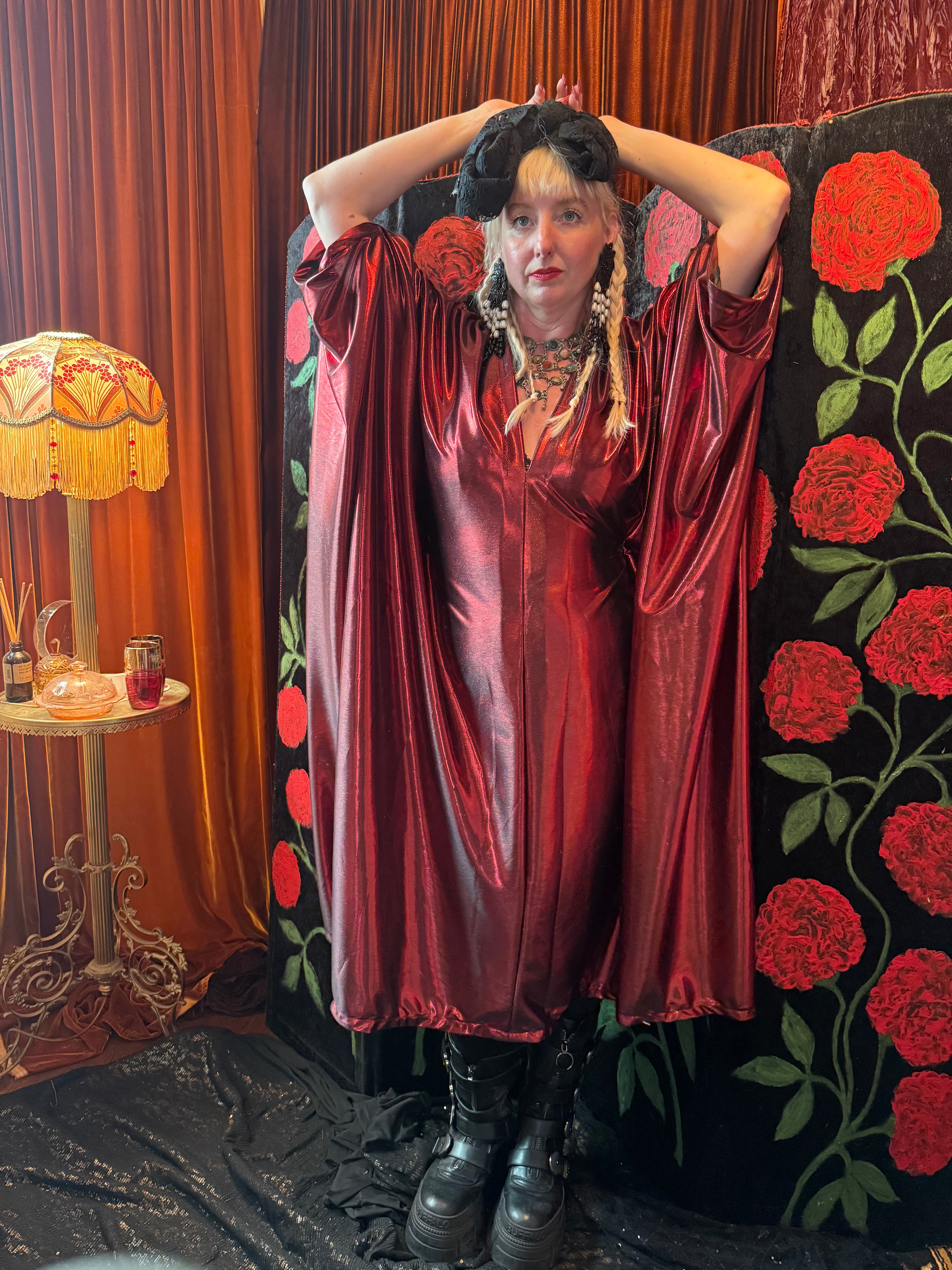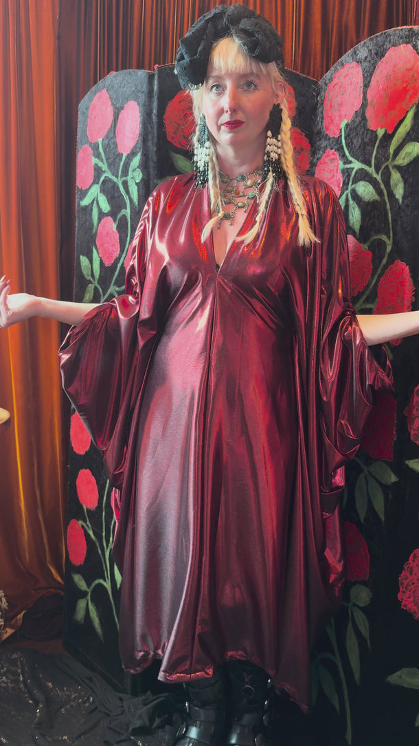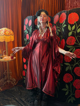 Red Foil Metallic V-Neck midi Kaftan Gown