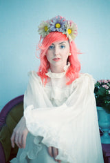 Vintage 60s daisies pink purple white Reversible Flower Crown