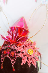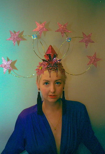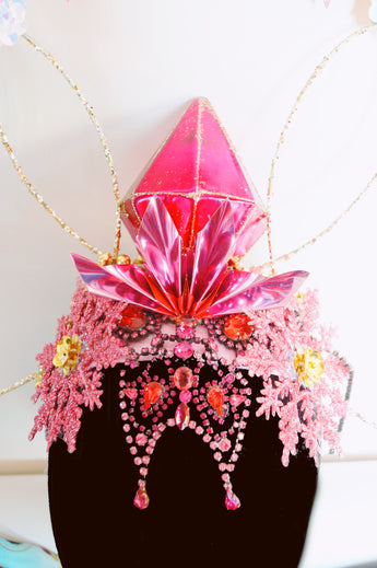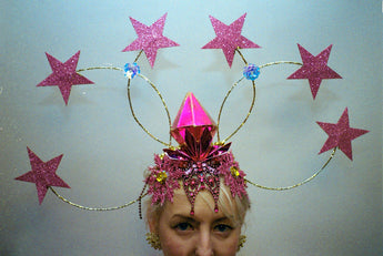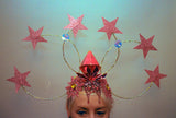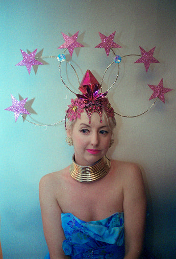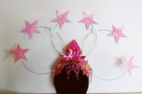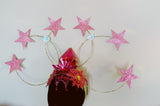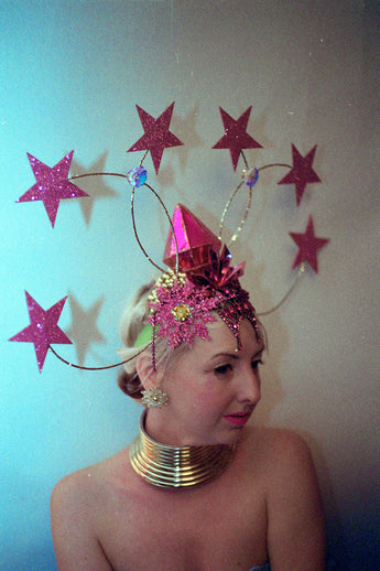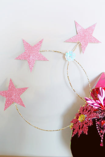 Dramatic pink glitter foam stars headdress with central diamond- vintage cabaret/burlesque inspired.