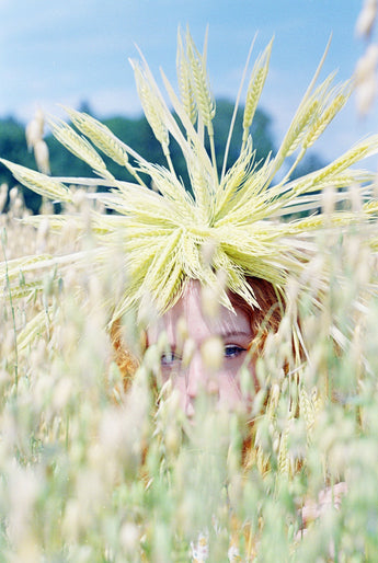 Statement headdress made from the most delicate vintage 50s artificial wheat.