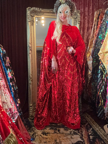 Our kaftan dresses are uniquely fitted with hidden velvet ribbons inside, meaning YOU decide how you'd like to wear them. Choose from -