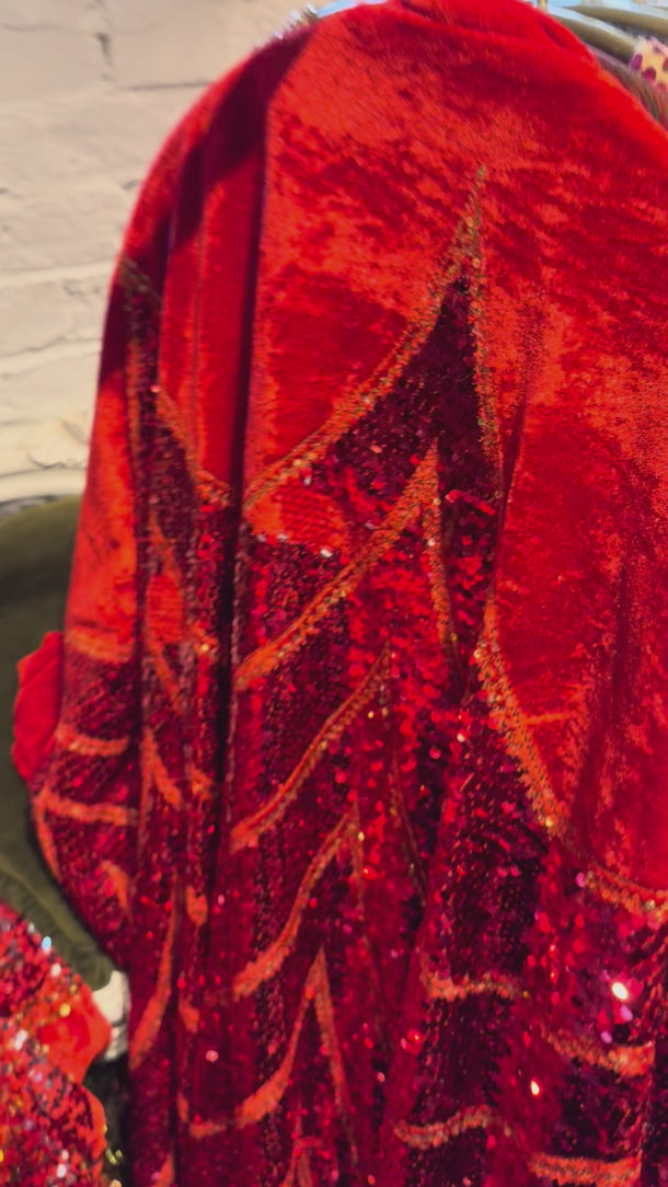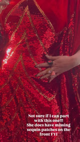 XMAS 25 OFF THE RAILS - red sequin slash neck with MISSING SEQUIN PATCHES