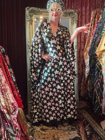 XMAS 25 OFF THE RAILS - star sequin velvet v-neck maxi