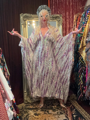 XMAS 25 OFF THE RAILS - luxe sequin v-neck purple silver wave