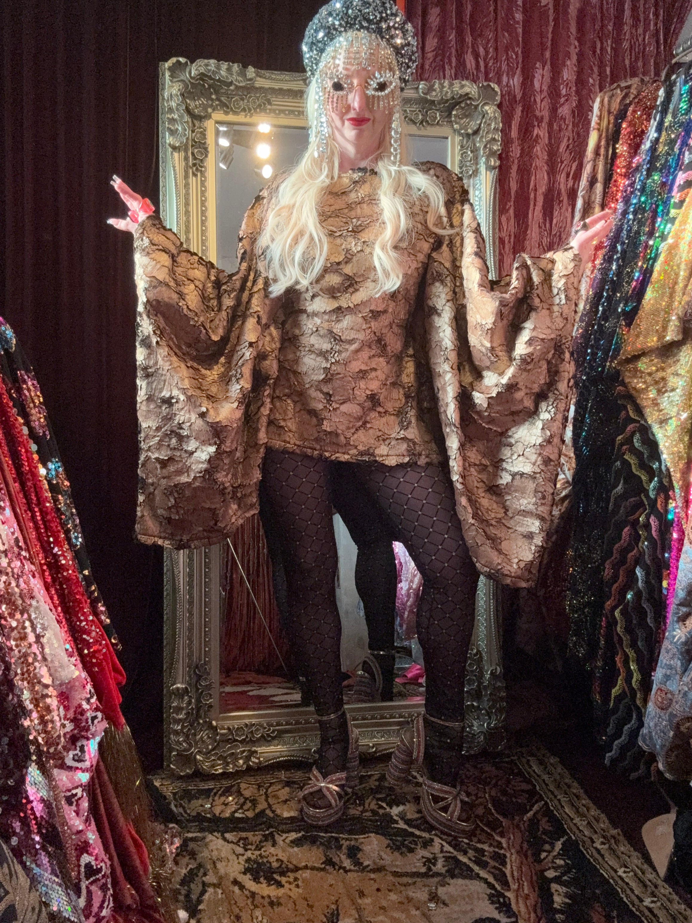 2) With our hidden velvet ribbons tied at the waist to cinch your waist and accentuate and celebrate your glorious figure and frame